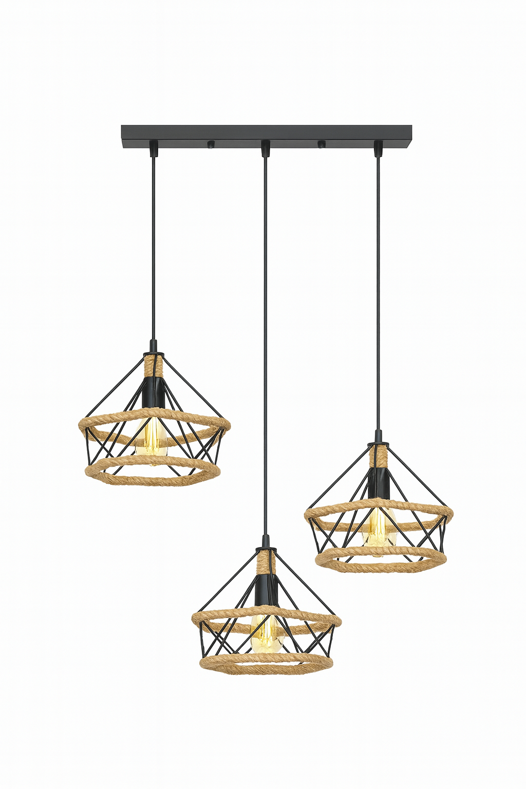 Con tres puntos de luz tipo Edison, ilumina de forma cálida y decorativa, perfecto para barras, comedores, locales gastronómicos o espacios con vibra industrial o boho.