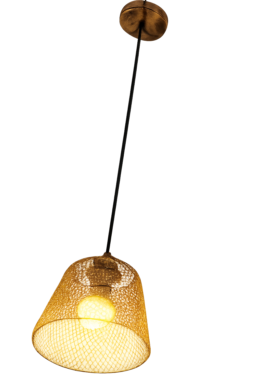 El Colgante Mesh Ámbar combina diseño industrial con un toque cálido y decorativo.