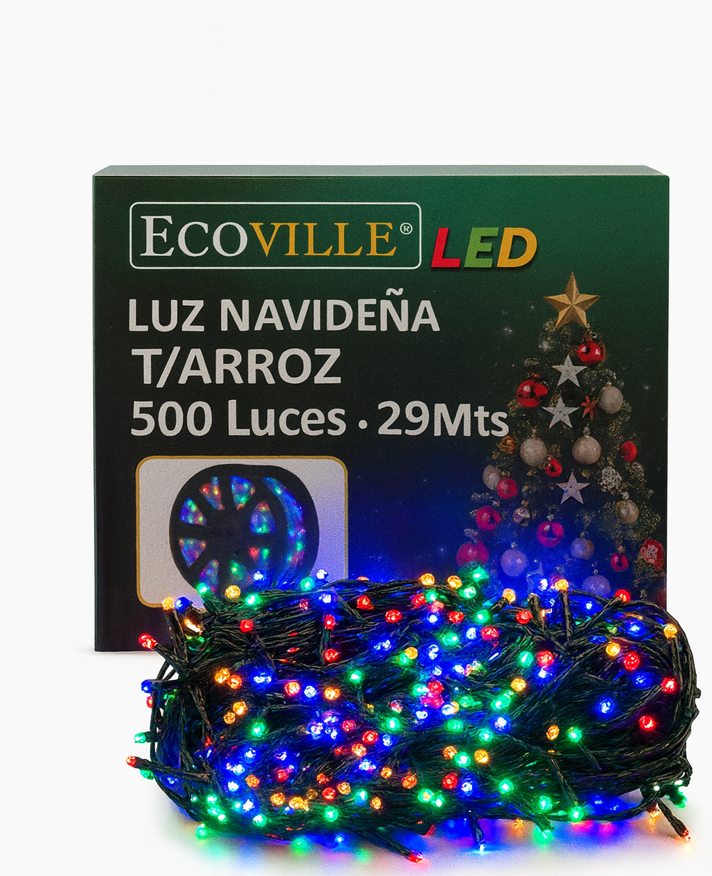 Luz Navideña ECOVILLE – 500 Luces LED, 29 Metros, Tipo Arroz